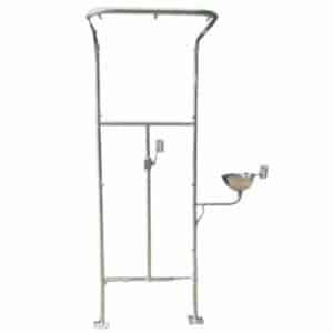 • Double COMBO – Hand and Foot operated safety shower 304 Stainless steel with 13 x 1/4″” spray nozzles (ANSI / ISEA Z358.1-2014) with Hand operated eyewash bowl, with dust covers and Stainless Steel braided hose (SABS appr) (H220cm x W65cm x L70cm) Weight 18kg”