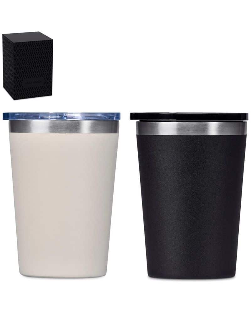 The double-wall stainless steel, vacuum construction of this tasteful tumbler will keep liquids hot or cold for hours. The simple, clean design results in a tumbler that fits snugly in your hand and in the drinks holder of your car.
