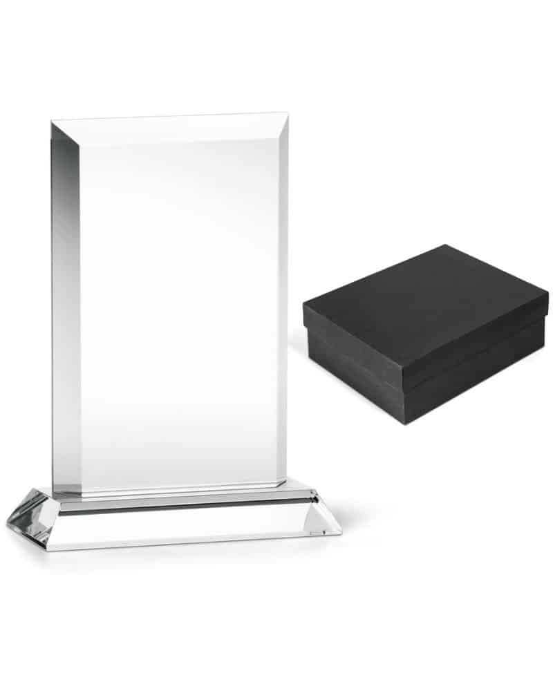 Simple but elegant . Make use of the great branding area . This optical glass award comes in a black presentation box.