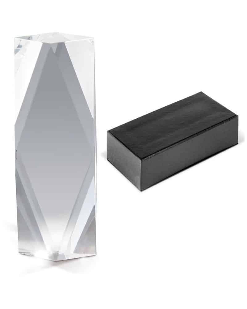 Beautifully made from optical glass. Great for recognition in the workplace, at a sports event, schools and many other events. Comes in a lined black box, bringing sophistication to a new level. Our awards are individually crafted and may vary slightly.