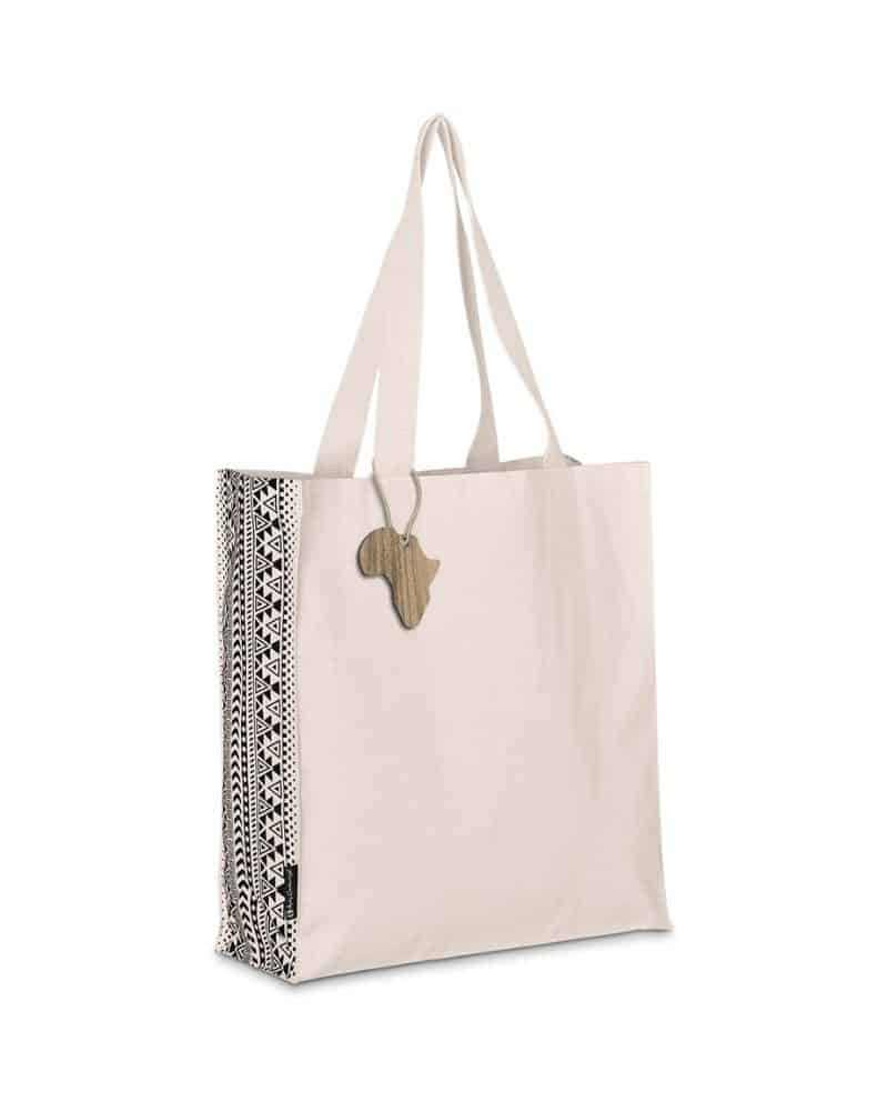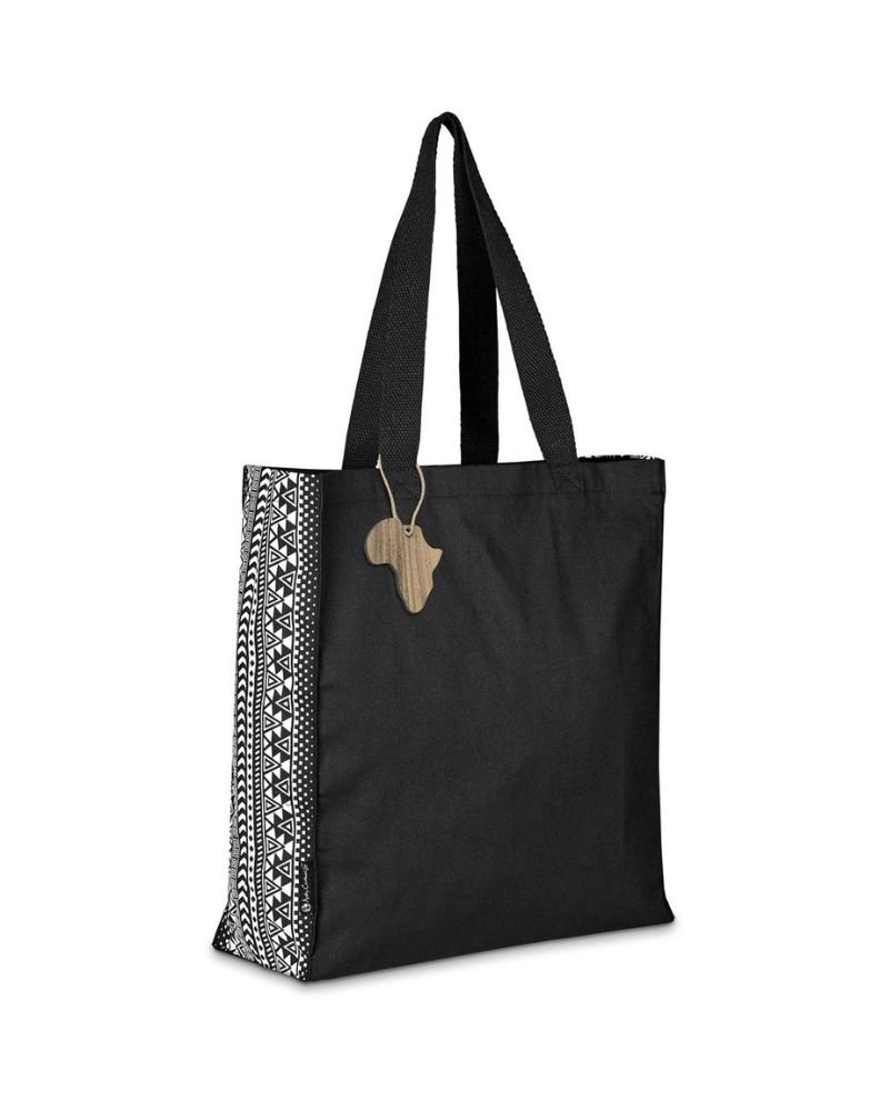 Symmetry, by South African designer, Andy Cartwright, is a collection of carefully curated products, featuring a striking symmetrical pattern. This large, natural cotton tote bag features the pattern printed on the two side panels of the bag, leaving room for the branding of your logo or message on the main front and back panels.