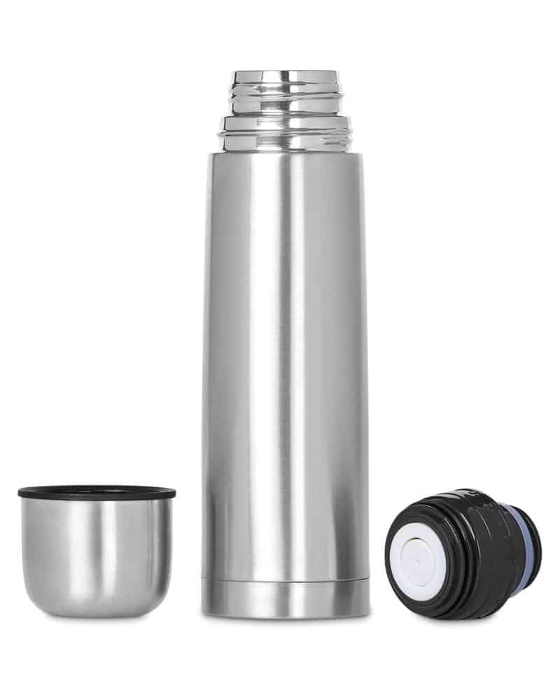 Beautiful silver flask. Double-walled with an easy pour button release which auto closes when lid is closed. Makes a great outdoor gift.This flask is designed for hot or cold water and beverages such as tea and coffee. Please don’t use it for acidic liquids such as orange juice, as this could cause damage to your flask.