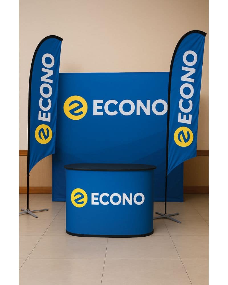 Make your brand shine at any retail event, market, or community activation with the ECONO Branded Kit. This budget-friendly setup is perfect for small businesses, NGOs, schools, and promotional teams looking for a professional, portable, and eye-catching display.