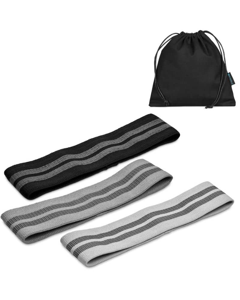 The importance of physical and mental wellbeing is being increasingly recognised and prioritised at both a personal level and at the workplace. Eva & Elm provides a range of products for those who wish to improve their wellbeing, or to help their staff or clients to do so. Options to brand a company logo or message are included, giving you the opportunity to associate your organisation with the positivity of health and wellness. This a set of 3 high performance resistance bands of different resistance levels, for a wide range of exercises to strengthen your core, and build and tone muscle.