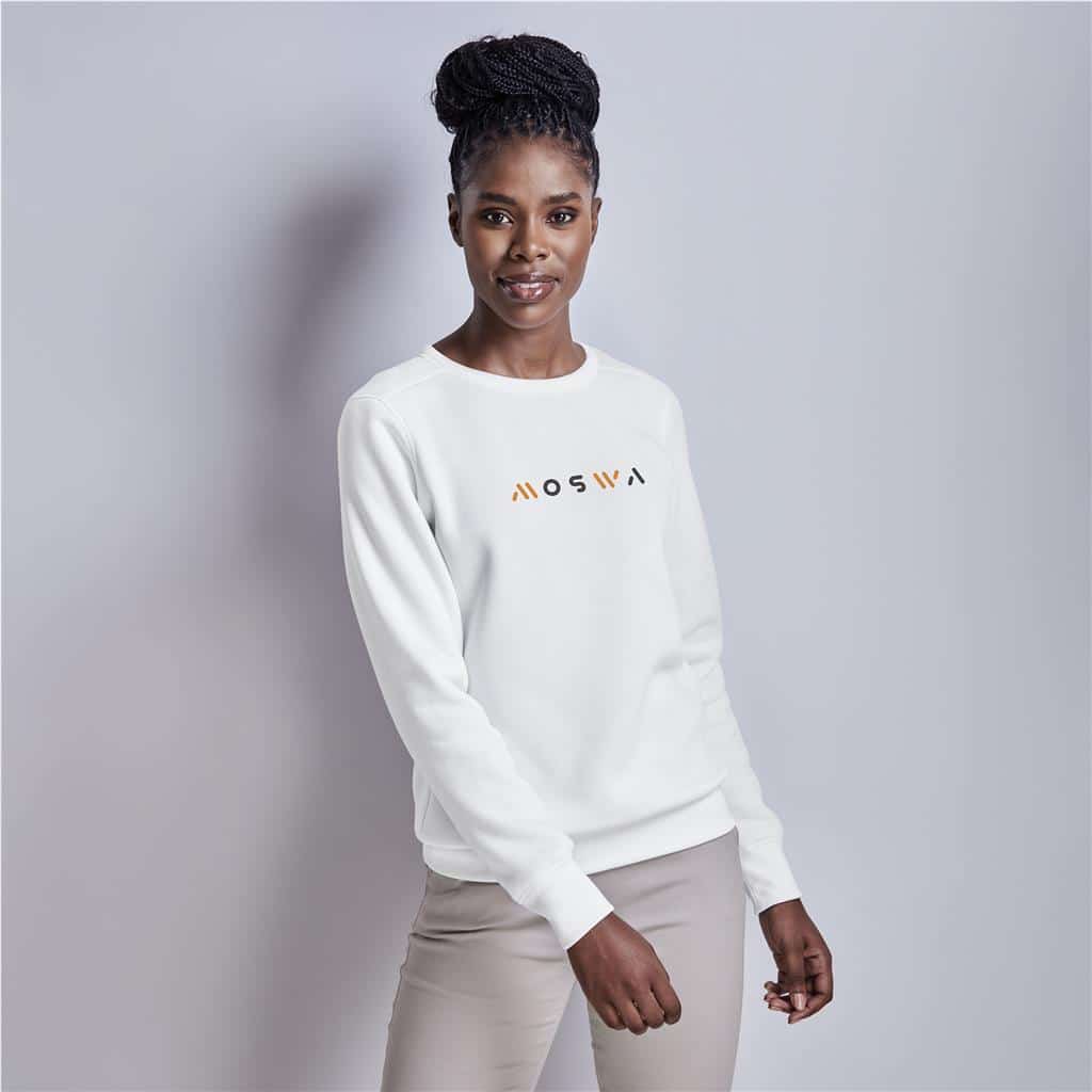 The Ladies Quinn Crew Neck Sweater (FS-UB-41-A) from Amrod is a warm, easy-care brushed‑fleece garment designed for everyday corporate and casual wear. Its ribbed finishes and standard-fit cut offer comfort and durability across a wide size range.