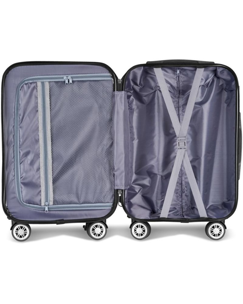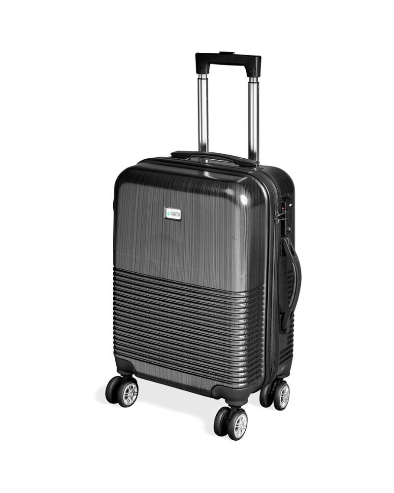 Cabin size luggage with hardshell structure. The surface interest finish and ridge detail combine to create a fashionable look. Strong, smooth-rolling dual carriage wheels make heavy loads a breeze.