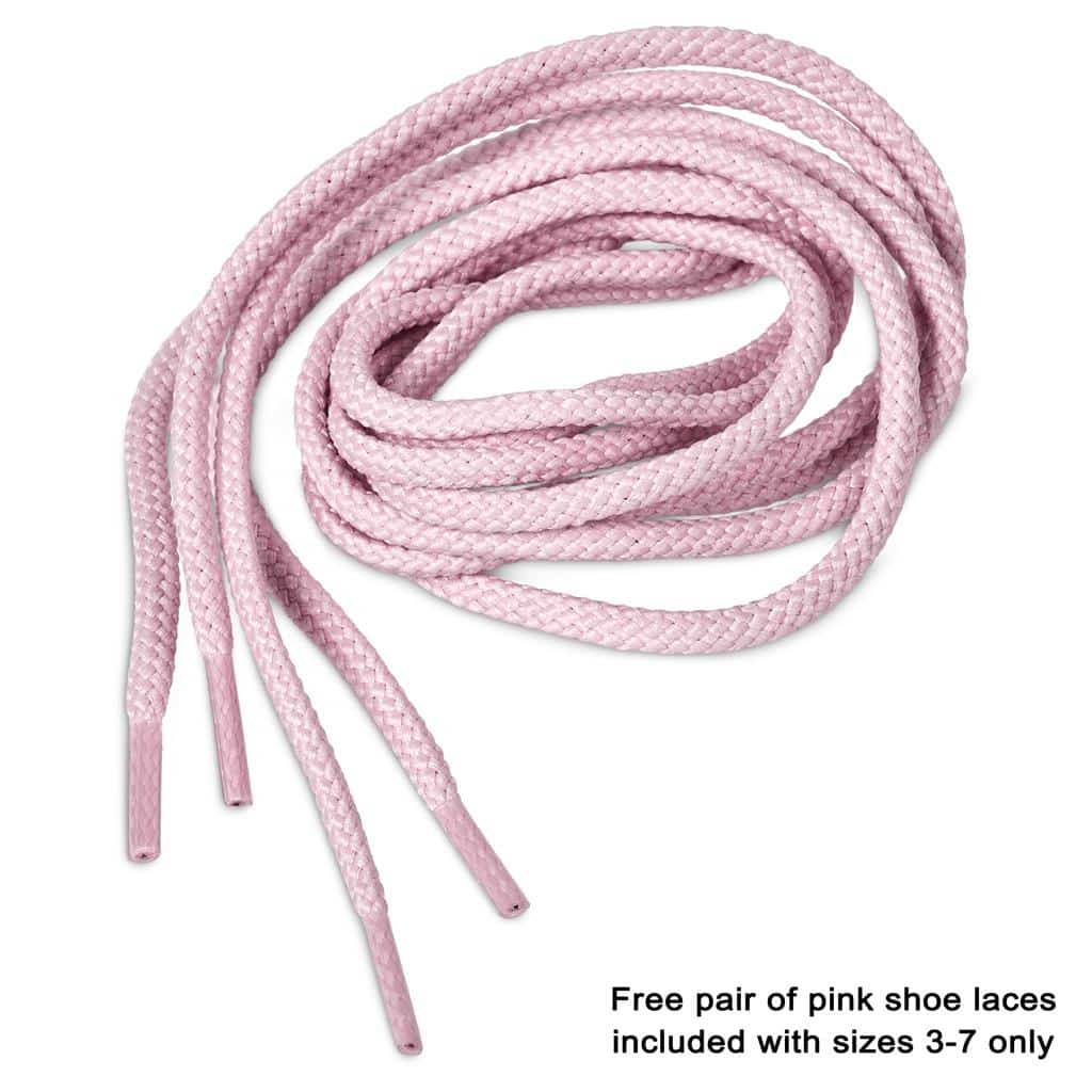 - 🥿 Sizes 3–7 include an additional pair of pink laces