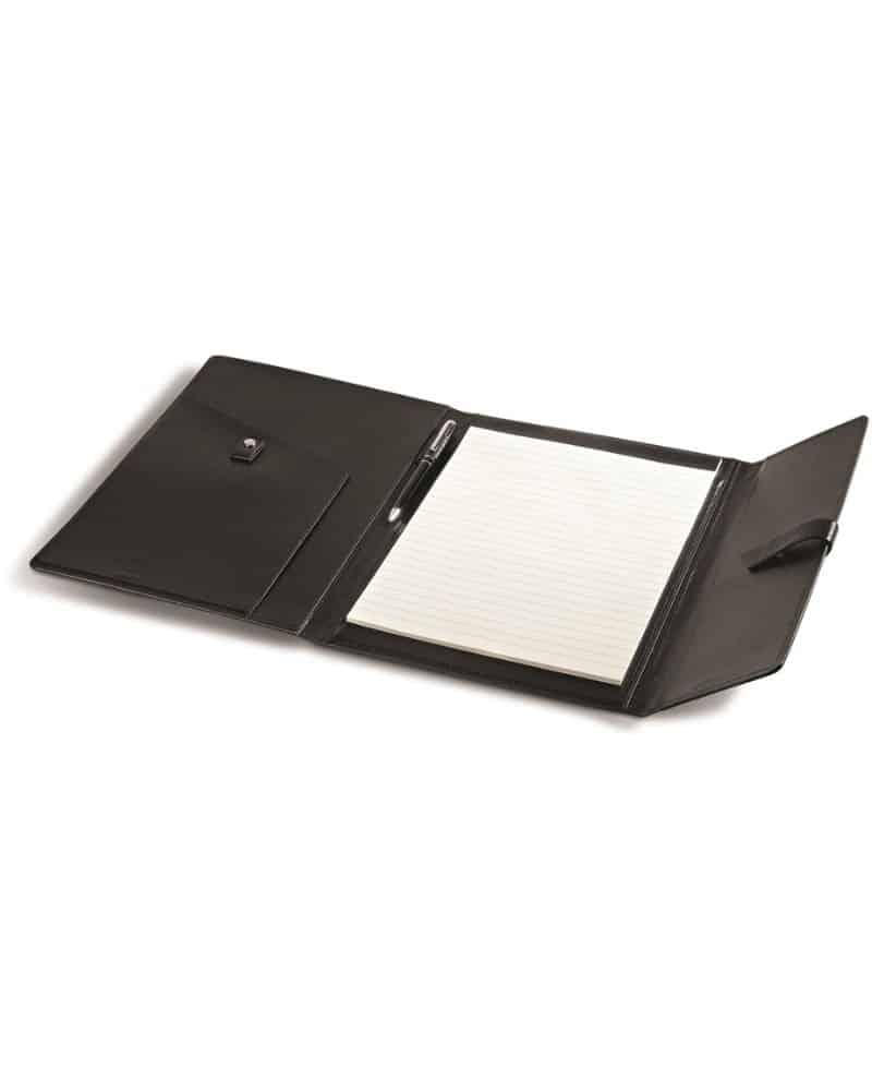 The textured PU surface and the strap closure give this folder a classic look and feel, which can be enhanced by subtle deboss branding.